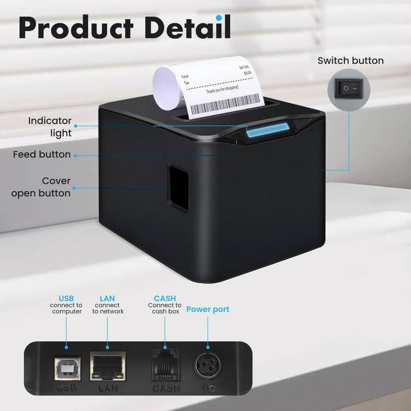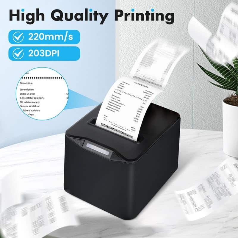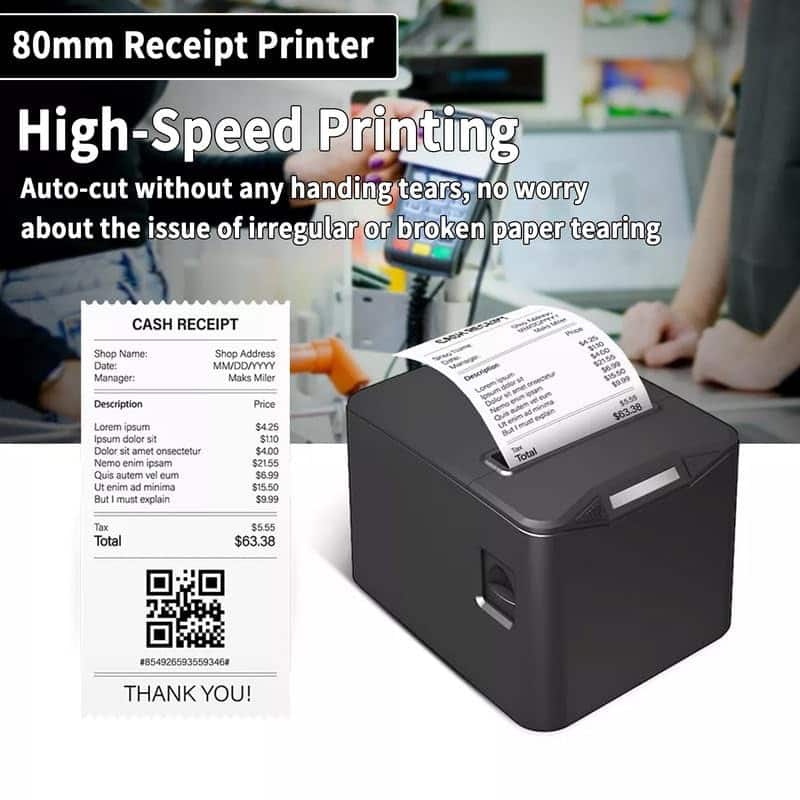 Paper roll specifications: paper width 80mm outer diameter 85mm Printing speed: up to 250mm/sEconomical and environmentally friendly: ultra-low energy consumption design, standby energy consumption is only about 0.5W Reliable and durable: cutter life 1 million times, print head above 150KM
